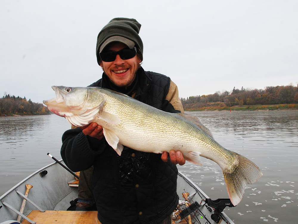 Each fall walleye migrate down from the sprawling waters of the 12th biggest freshwater lake in the world -- Lake Winnipeg, to inhabit the Red River and Winnipeg River. These giant fish are truly unique in that they are an iridescent opal green that shimmers in the light like no other walleye in North America. Locals call the walleye out of Lake Winnipeg, "Greenbacks" because of their unique coloration. Besides their special coloration these walleye are big. To turn a head on either the Red River or the Winnipeg River you have to be hoisting a walleye of more than ten pounds. Walleye as big as fifteen pounds are caught every year. The greenback run begins about the middle of September and continues on into November.