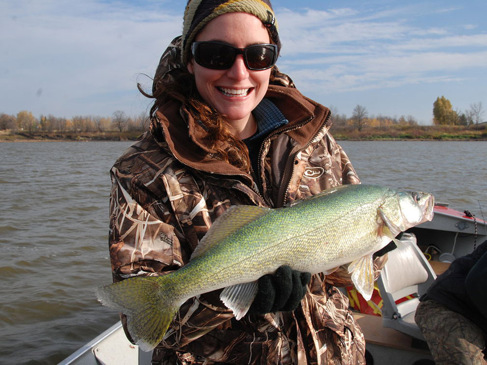 Each fall walleye migrate down from the sprawling waters of the 12th biggest freshwater lake in the world -- Lake Winnipeg, to inhabit the Red River and Winnipeg River. These giant fish are truly unique in that they are an iridescent opal green that shimmers in the light like no other walleye in North America. Locals call the walleye out of Lake Winnipeg, "Greenbacks" because of their unique coloration. Besides their special coloration these walleye are big. To turn a head on either the Red River or the Winnipeg River you have to be hoisting a walleye of more than ten pounds. Walleye as big as fifteen pounds are caught every year. The greenback run begins about the middle of September and continues on into November.